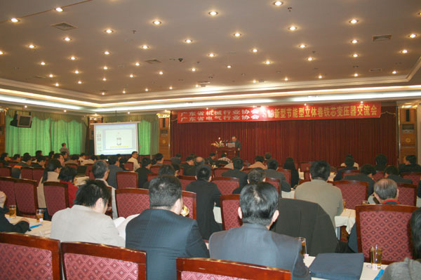 2007年12月28日由廣東省機(jī)械行業(yè)協(xié)會、廣東省電氣行業(yè)協(xié)會共同組織的“海鴻公司新型節(jié)能型立體三角形卷鐵芯變壓器技術(shù)交流會”在開平市花園酒店勝利召開,并于會后參觀了海鴻公司生產(chǎn)現(xiàn)場。出席本次會議的代表有:廣東省經(jīng)貿(mào)委、廣東電網(wǎng)公司、廣東省電力物資總公司、廣東省節(jié)能中心、廣東省民間組織管理局等單位領(lǐng)導(dǎo)和47家變壓器生產(chǎn)企業(yè)的領(lǐng)導(dǎo)或技術(shù)人員,共有120多人。